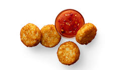 Knapperige Hash Browns gemaakt van aardappel, geserveerd met een dip naar keuze.